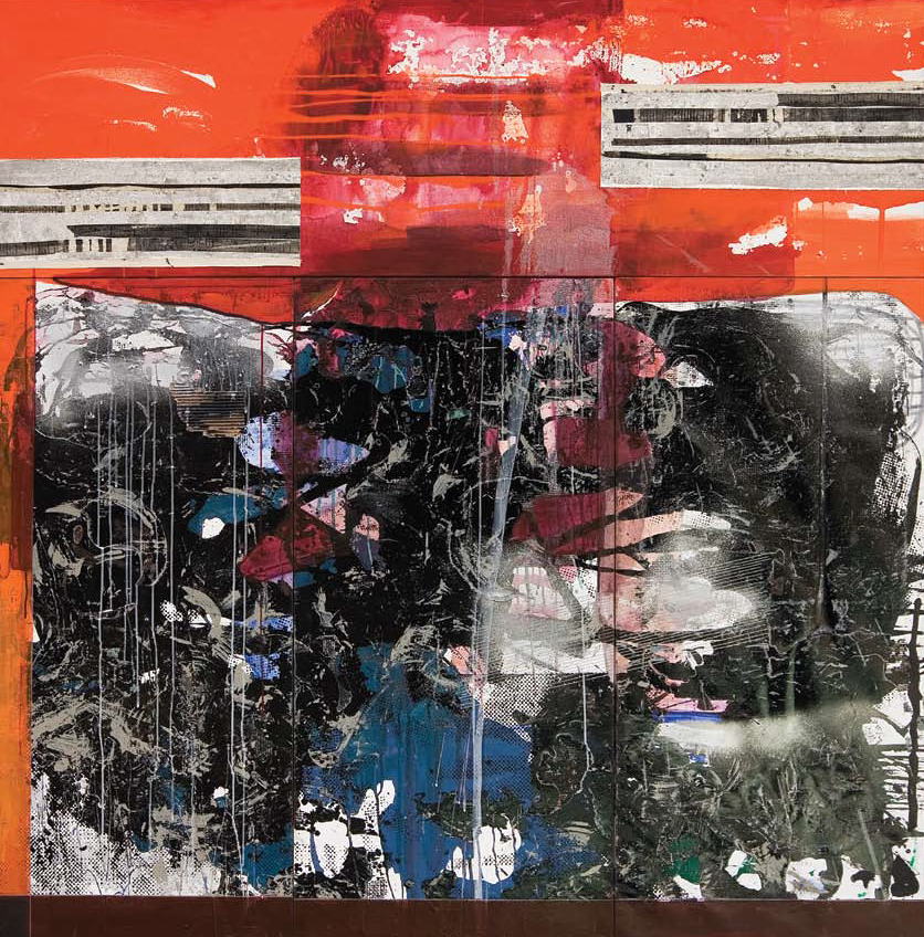 Her basics firmly rooted from an education that originated in textile design in India and drawing & painting from Parsons school of design in New York, Brinda reconnoiters the myriad of spatial geometrics, in the realm of abstraction. Exploring materials and mediums, it has permitted her the freedom of expression as departure from her sojourn in the figurative articulation. The usage of multiple canvasses in the frame allows her to ‘bend the rules’ within her own metaphysical confines.